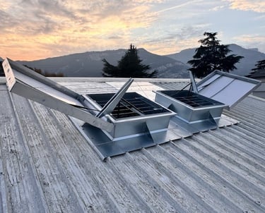 Nous installons des dispositifs de désenfumage conformes aux normes en vigueur : ouvrants, exutoires, volets, commandes, moteurs et centrales de gestion. Chaque installation est pensée pour garantir une extraction efficace des fumées et faciliter l’intervention des secours.
